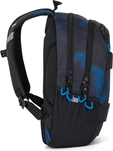 Das Innenleben ist clever durchdacht: Zwei Hauptfächer fassen Bücher und Ordner, das gepolsterte Fach schützt den Laptop sicher, eine kleinere Tasche und ein Karabiner halten Kleinteile in Ordnung. Eine praktische, versteckte Tasche am Rücken bewahrt Wertsachen auf, die Seitentasche ist für die Flasche bereit. Reflektierende Elemente erhöhen die Sichtbarkeit auf dem Schulweg und nach Hause.
