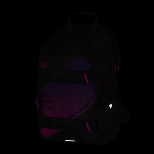 Das Set aus Schulrucksack mit Etui OXYBAG Sport im beliebten Ombre-Design kombiniert einen modernen Look mit praktischer Aufteilung. Der Rucksack hat zwei geräumige Hauptfächer und eine kleinere Fronttasche, robuste Reißverschlüsse mit Zippern und einen Organizer für den täglichen Überblick. Für den sicheren Transport von Technik gibt es innen eine gepolsterte Laptop-Tasche, dazu einen Schlüsselkarabiner, ein kleines Fach für Kleinigkeiten und eine versteckte Tasche auf der Rückseite.