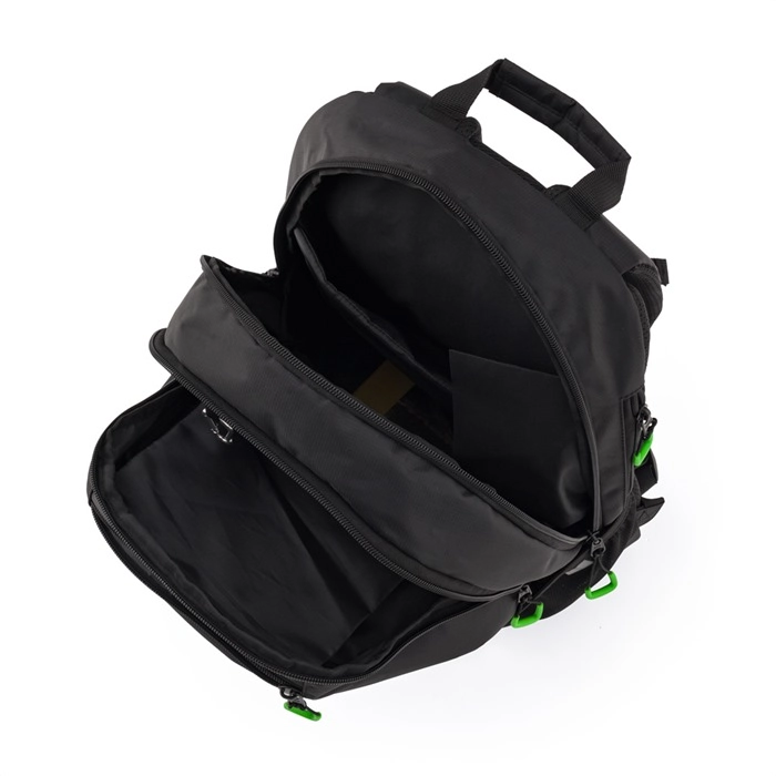Zwei Hauptfächer, eine Fronttasche, ein Innenorganizer und eine gepolsterte Laptop-Tasche halten alles übersichtlich und sicher verstaut.