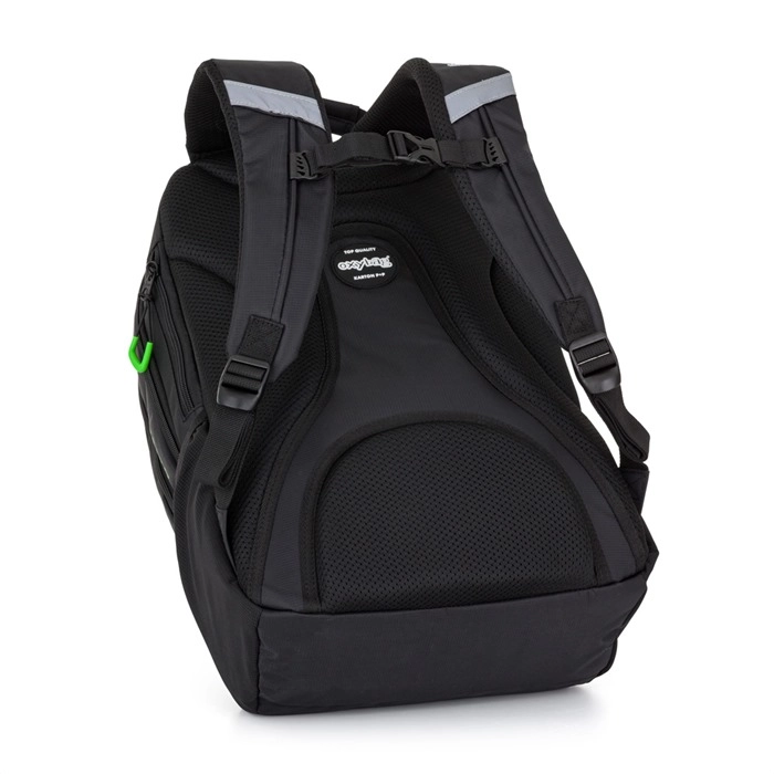 Strapazierfähige Reißverschlüsse, eine praktische seitliche Flaschentasche und reflektierende Details für bessere Sichtbarkeit auf dem Schulweg.