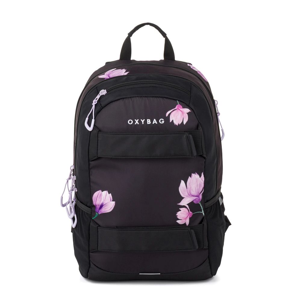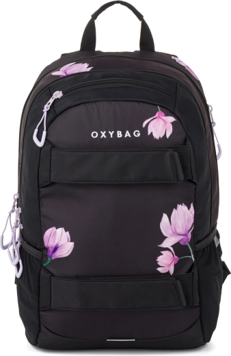 Das OXY Sport Flowers Set vereint Funktionalität und Design. Der Rucksack verfügt über zwei Hauptfächer und eine Vordertasche mit robusten Reißverschlüssen, innen ein gepolstertes Laptopfach, einen Schlüsselkarabiner, kleinere Fächer für Kleinigkeiten und eine versteckte Tasche am Rücken. Für den täglichen Komfort sorgen eine seitliche Flaschentasche, gepolsterte Schultergurte und ein Brustgurt für Stabilität. Das Etui mit Reißverschluss und elastischem Gummi hält Schreibwaren übersichtlich an ihrem Platz.