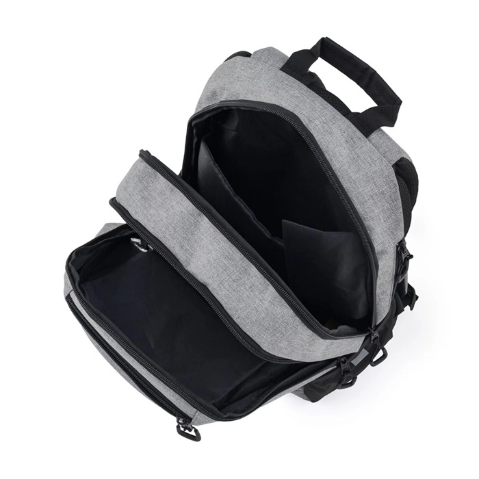 Zwei Hauptfächer, eine Fronttasche mit Organizer, ein Karabiner für Schlüssel und eine gepolsterte Laptoptasche sorgen für Übersicht und Sicherheit.