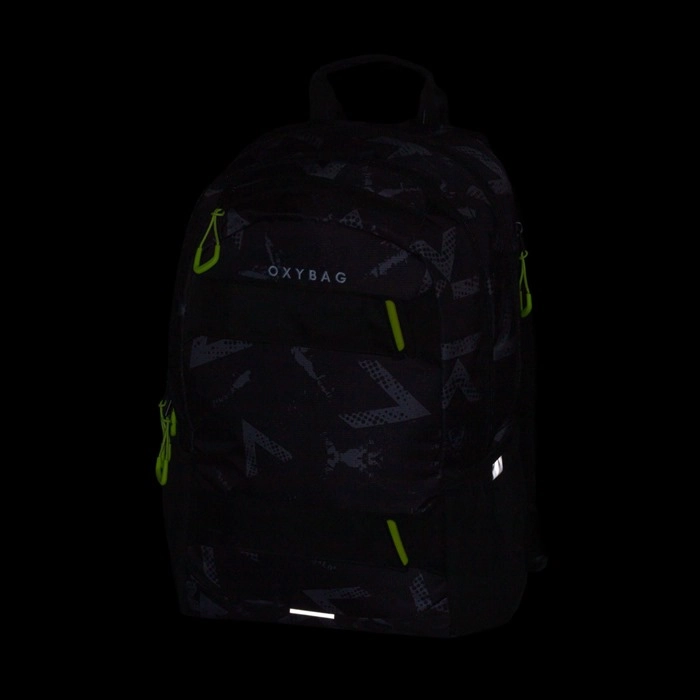 Der Schulrucksack OXYBAG Oxy Sport Abstract ist für komfortables tägliches Tragen konzipiert. Dank anatomisch geformtem Rücken, atmungsaktiver Polsterung und gepolsterten Schulterriemen mit Brustgurt passt sich der Rucksack dem Körper hervorragend an und sitzt auch bei voller Beladung stabil. Hochwertige Reißverschlüsse mit Zippern, strapazierfähiges Material und reflektierende Details sorgen für bessere Sichtbarkeit.