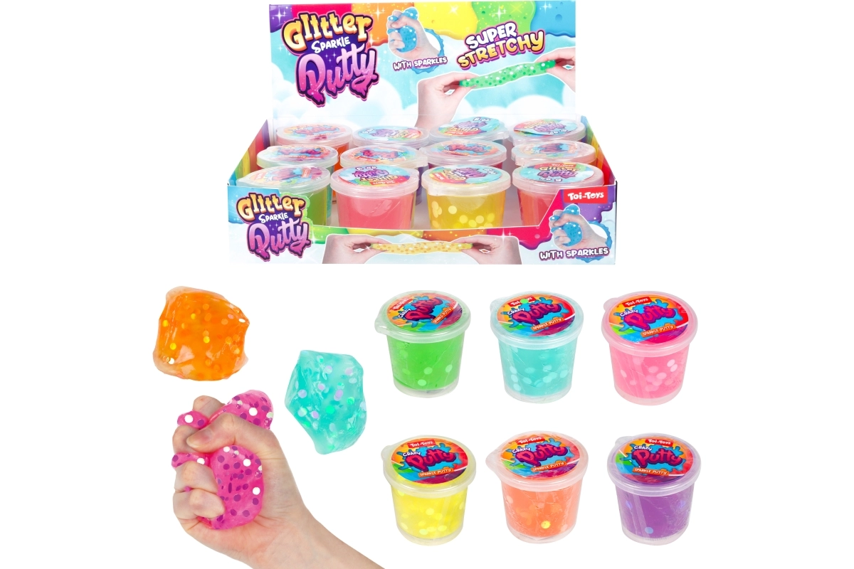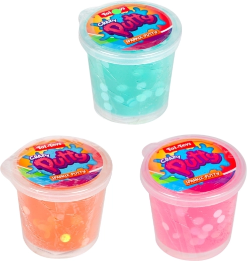 Jedes Stück ist in einem transparenten Kunststoffbecher mit kompakten Maßen von 6 × 6 cm verpackt, der den Schleim frisch und sauber hält. Dank des Glitzer- und Konfetti-Effekts wirkt er besonders attraktiv und lädt zu weiterem Spielen ein. Die Farben werden in verschiedenen Nuancen je nach aktueller Verfügbarkeit geliefert.