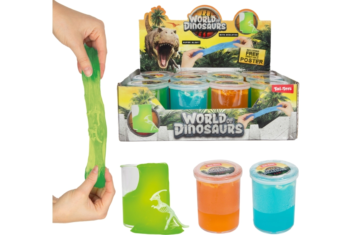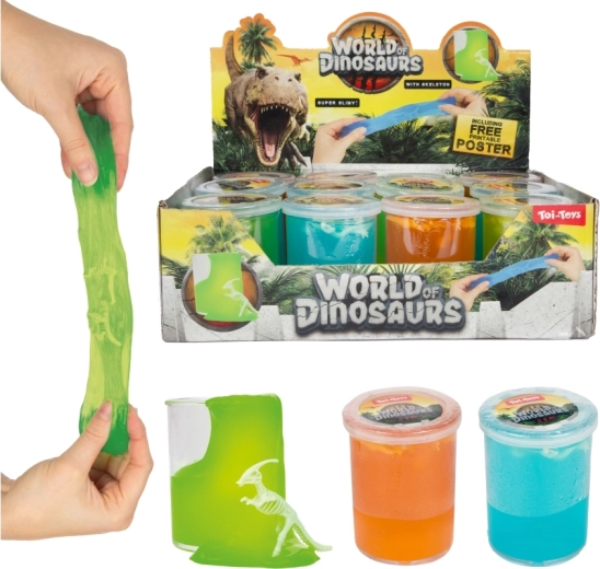 Dieser Schleim mit Dinosaurier-Thema bringt Kindern doppelten Spielspaß: Er ist nicht nur angenehm dehnbar, weich und formbar, sondern verbirgt zudem ein Mini-Dinosaurierskelett, das Kinder nach und nach entdecken können. Ideal für das Spielen zu Hause, für Kitas oder als kleines Geschenk.