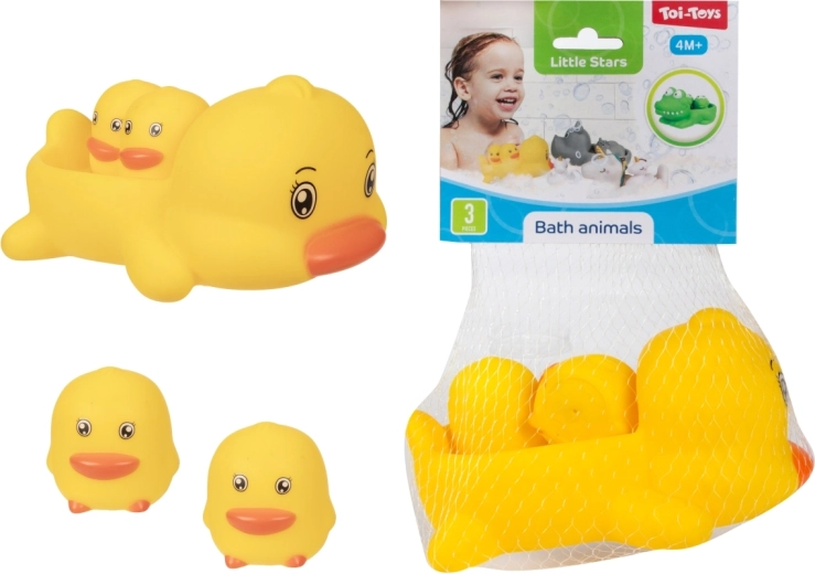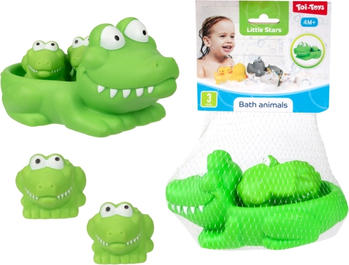 Dieses Set mit Badetierchen verwandelt jedes Bad in ein freudiges Abenteuer. Das größere schwimmende Tierchen (ca. 17 × 10 cm) dient als „Boot“, das zwei kleinere Tierchen (ca. 7 cm) mitnimmt. Das weiche Material ist angenehm anzufassen und sicher für Kleinkinder, während die leuchtenden Farben die visuelle Stimulation und die Entwicklung der Feinmotorik fördern.