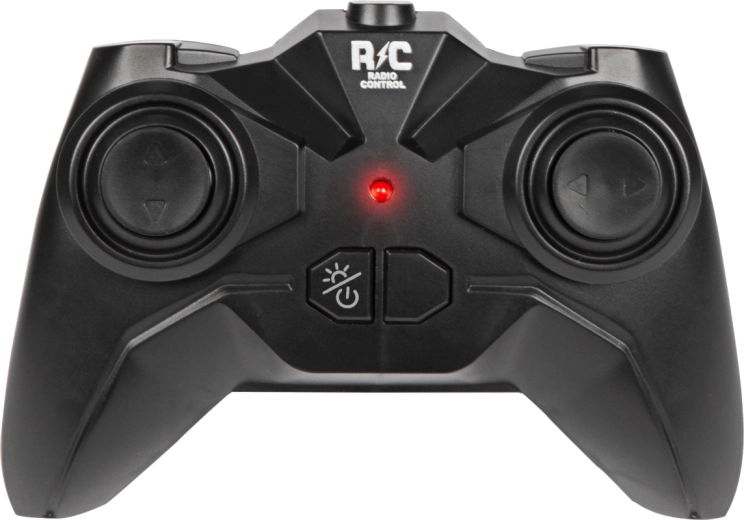 Ergonomischer Sender mit übersichtlichen Tasten für einfache Richtungssteuerung und Aktivierung spezieller Funktionen. Auch für kleine Kinderhände geeignet.