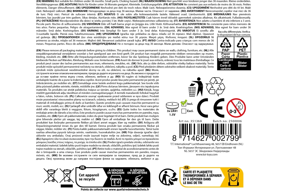 Das gesamte Set ist aus robustem Kunststoff gefertigt und sofort einsatzbereit – 3× AG13-Batterien sind bereits enthalten. Ein tolles Geschenk für kleine Spione, das Kreativität, Fantasie und Feinmotorik fördert.