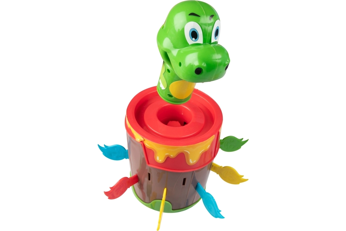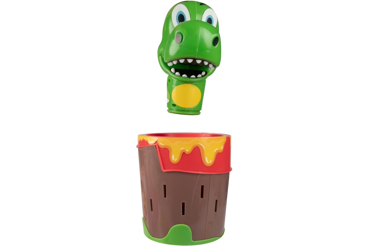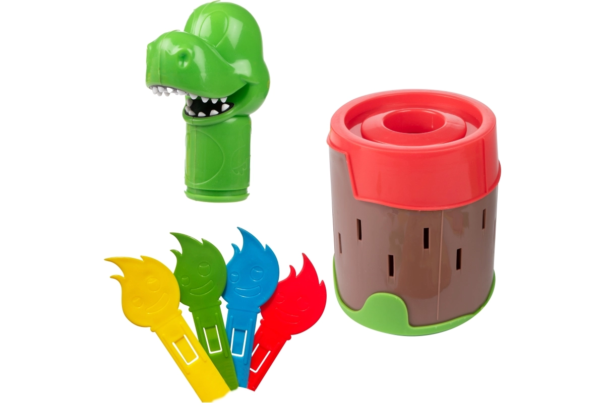 Stecken Sie die Feuerstäbchen ins Fass und warten Sie, wann der Dinosaurier herausspringt. Der einfache Mechanismus ohne Batterien sorgt für ein zuverlässiges und unterhaltsames Spiel für die ganze Familie.