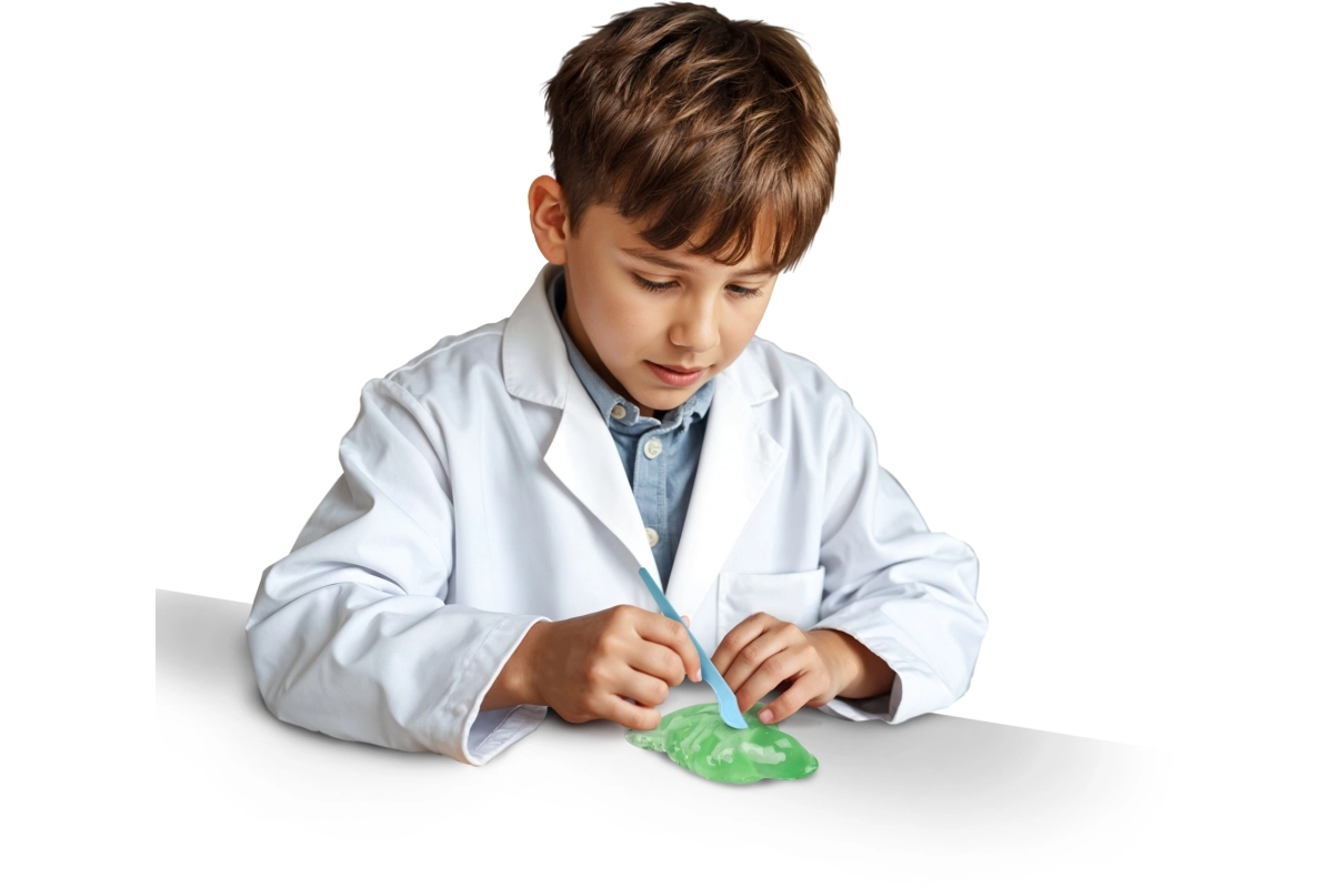 Weicher Schleim fördert Feinmotorik, Kreativität und sensorische Wahrnehmung. Kinder können den Schleim drücken, ziehen und in lustige Motive formen.