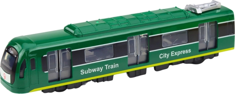 Entdecken Sie den detailreich gestalteten grünen U-Bahn-Zug CITY EXPRESS mit den Aufdrucken Subway Train und City Express. Dank der realistischen Details von Fenstern, Türen und Dach wirkt er modern und authentisch. Integrierte Lichter und Sounds bringen die Atmosphäre des echten Stadtverkehrs ins Spiel.