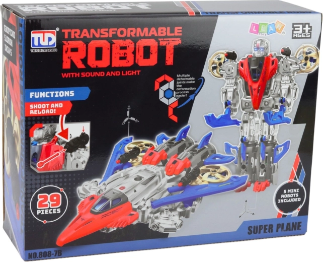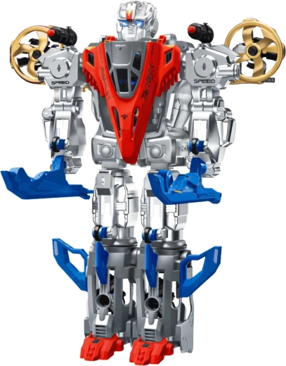 Dieses detailreich gestaltete Modell in Silber, Rot und Blau bietet zwei Spielmodi: einen Kampfroboter mit markanten Turbinen an den Schultern und einen aerodynamischen Jet mit ausladenden Flügeln. Integrierte Licht- und Soundeffekte ziehen Kinder ins Geschehen und verwandeln jeden Flug oder Kampf in ein spannendes Abenteuer.