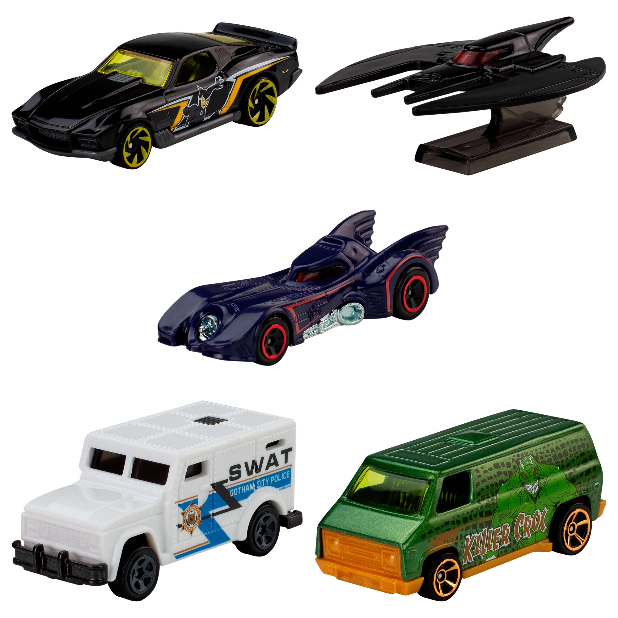 Fünf detailreich gestaltete Die‑Cast‑Modelle im Maßstab 1:64 decken Helden und Schurken aus Gotham ab – ideal für Fans von DC und Hot Wheels.