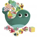 Genießen Sie eine unterhaltsame und lehrreiche Aktivität mit diesem motorischen Balancierspiel. Der hölzerne Wal mit bunten Fischen ist ideal zur Förderung der Feinmotorik und der Hand-Augen-Koordination.