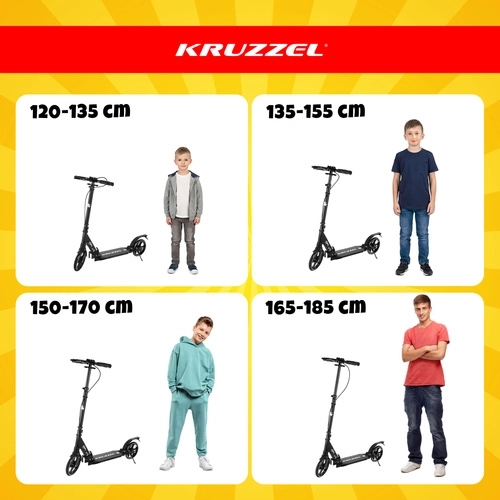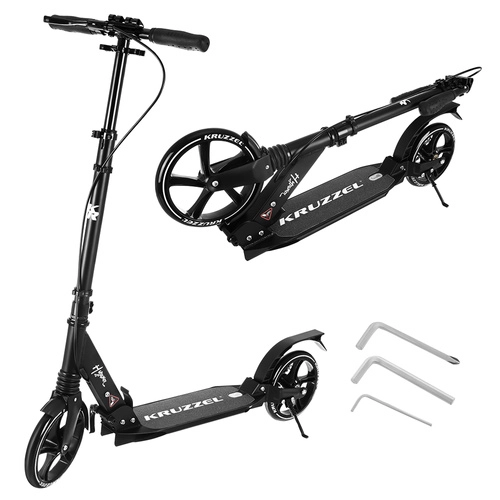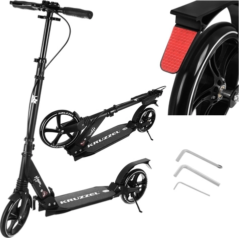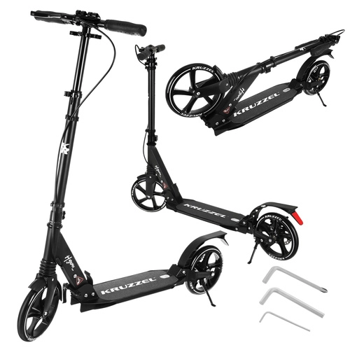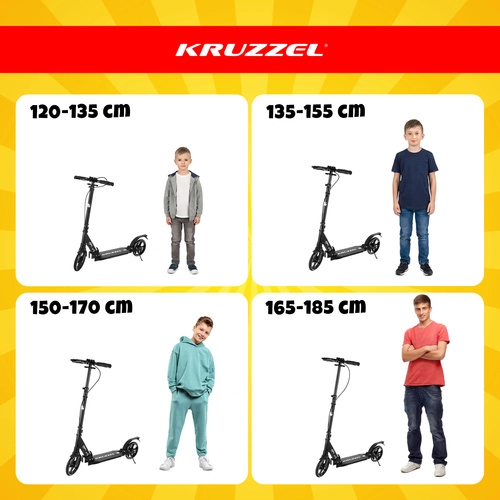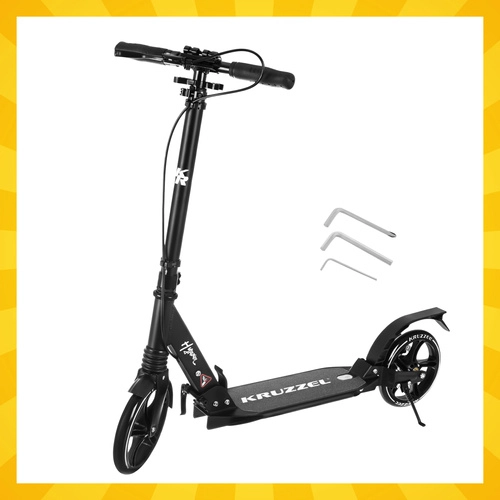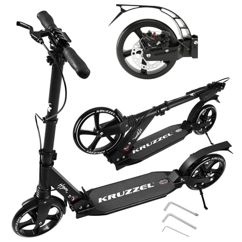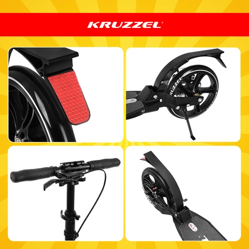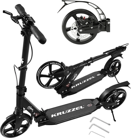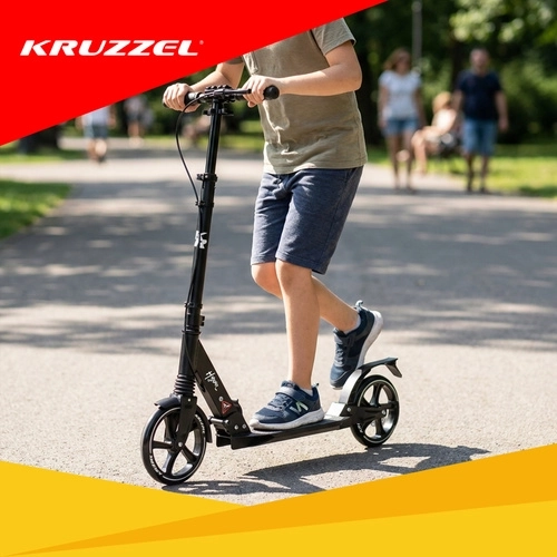 Der Roller KRUZZEL Hyperion ist ein Premium-Stadtmodell für eine ruhige und komfortable Fahrt. Gummiräder mit 20 cm Durchmesser meistern Unebenheiten leicht, ABEC-9-Lager reduzieren den Rollwiderstand und die Federung dämpft Vibrationen auf Gehwegen und Radwegen. Der Aluminiumrahmen ist leicht und stabil, wodurch der Roller einfach zu tragen und zu verstauen ist.