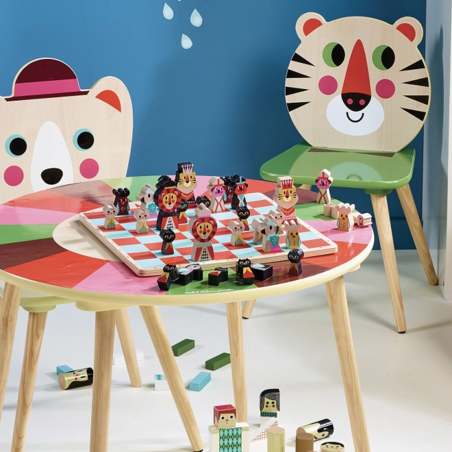 Wir präsentieren das Holzschachspiel mit Tiermotiven, das hervorragend für Kinder ab 6 Jahren geeignet ist. Dieses Spiel unterstützt nicht nur strategisches Denken, sondern entwickelt auch die Sinne durch leuchtende Farben und ein spielerisches Design. Schachbrett und Figuren wurden von der talentierten Ingela P. Arrhenius illustriert, einer bekannten schwedischen Künstlerin, deren Leidenschaft für den Retro-Stil in jedem Detail dieses Sets sichtbar ist.