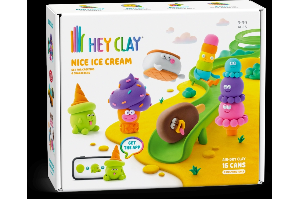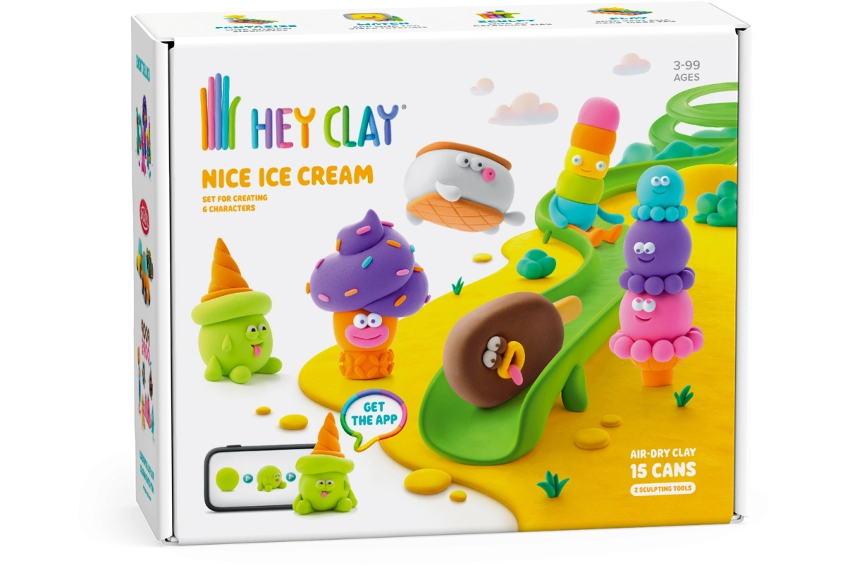 Das Hey Clay Eiscreme Set bringt eine frische Portion Kreativität für kleine und große Gestalter. Mit der leichten, bunten und lufttrocknenden Modelliermasse formen Kinder im Handumdrehen originelle Eiscreme-Figuren, die nach dem Trocknen ihre Form behalten und als Deko oder Geschenk dienen können.
