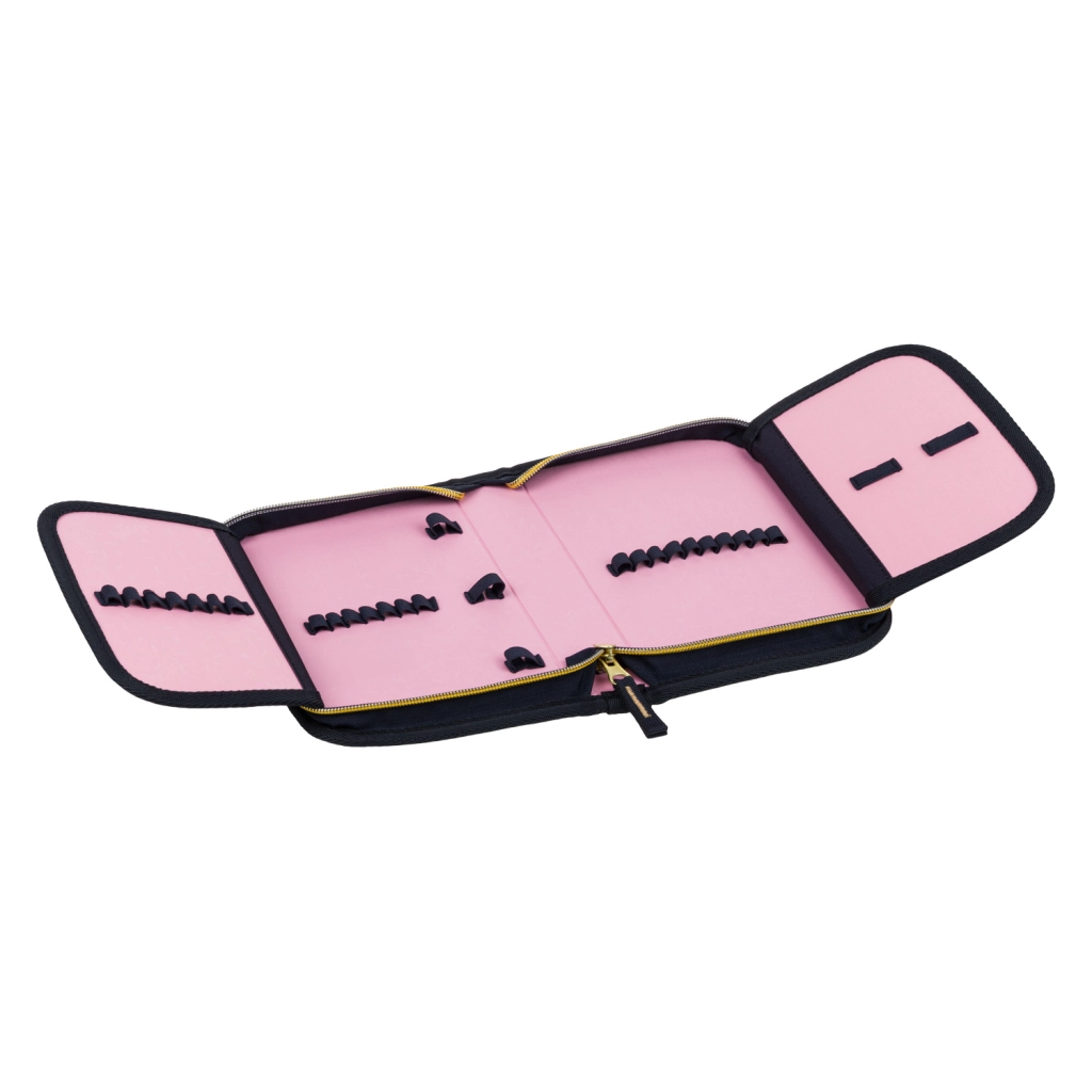 Dank der Möglichkeit des vollständigen Aufklappens erhalten Sie perfekten Zugriff auf alle Fächer und Gummischlaufen, die auch für dreieckige Bunt- und Filzstifte geeignet sind. Das Mäppchen wird ohne Füllung geliefert, sodass Sie es genau nach Ihren Bedürfnissen bestücken können.