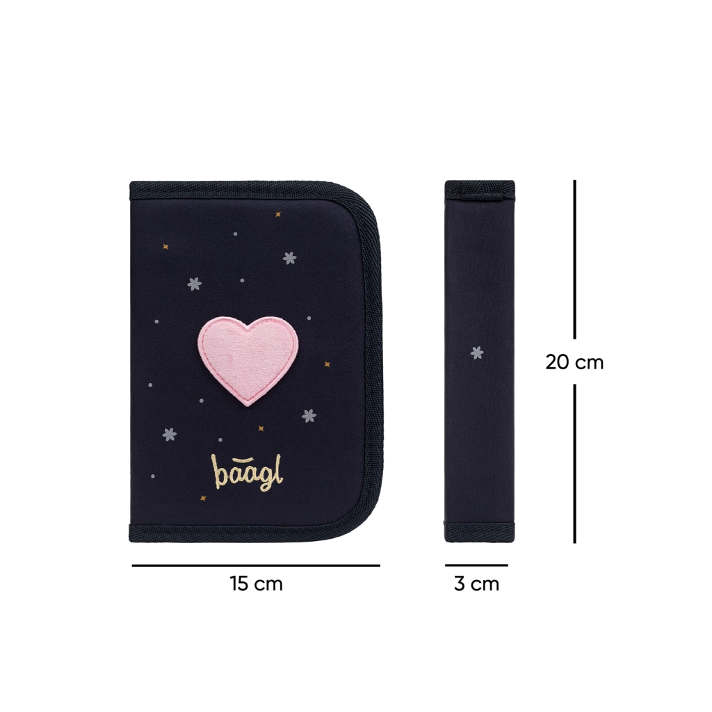 Das praktische und robuste Mäppchen BAAGL Unicorn Gold verbindet elegantes Design mit durchdachter Funktionalität. Die einlagige Konstruktion mit zwei Klappen und der hochwertige YKK-Reißverschluss gewährleisten eine bequeme und sichere Aufbewahrung der Schreibwaren. Innen fehlen weder ein Täschchen für Kleinigkeiten noch ein Fenster für den Stundenplan für schnellen Überblick.