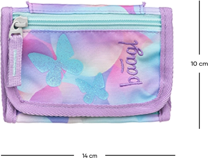 Die Baagl Candy Halsgeldbörse ist die ideale Wahl für Schule, Freizeitaktivitäten und Ausflüge. Sie kombiniert ein leichtes Design, frische Pastellfarben mit Schmetterlingsmotiv und eine durchdachte Fächeraufteilung. Dank des transparenten Namensschilds geht sie nicht verloren und alle wichtigen Dinge sind sicher verstaut und schnell erreichbar.