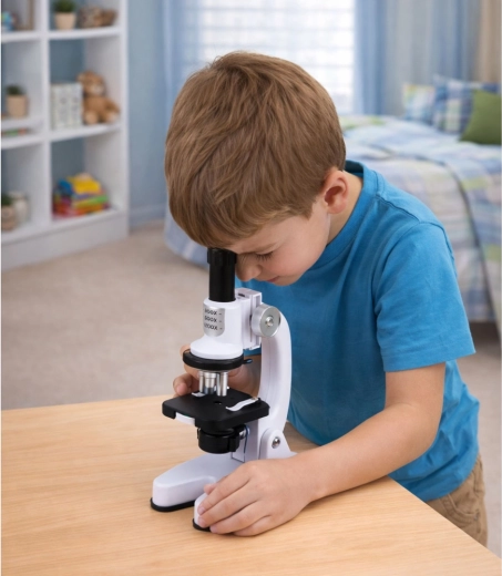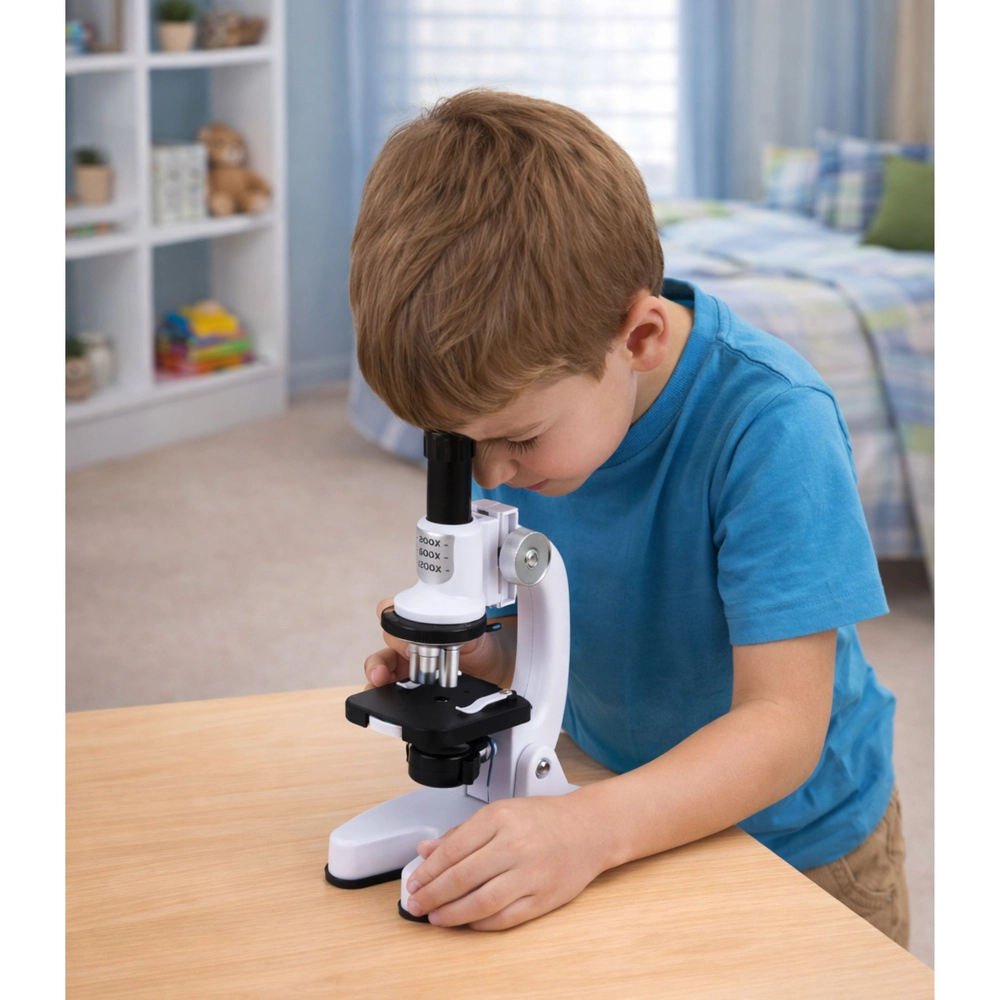 Das Kinder-Mikroskop ist ein großartiger Einstieg in die Welt der Biologie und des Mikrokosmos. Dank drei Vergrößerungsstufen passen Sie die Beobachtung leicht an die Probenart an, während die Schärferegelung ein klares und gut lesbares Bild sicherstellt. Das robuste Gehäuse und die feste Basis bieten Stabilität bei Experimenten.