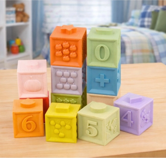 Weiches, elastisches Gummi ermöglicht es, die Würfel zu drücken, sicher zu stapeln und bequem zu halten. Das Maß 5 × 5 cm ist ideal für kleine Kinderhände.