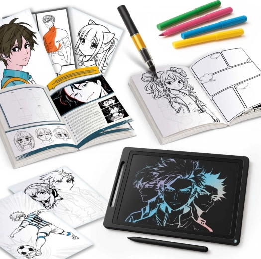 Kids Art – Manga-Labor ist ein smartes Kreativstudio für kleine Illustratorinnen und Illustratoren. Das LCD-Tablet ermöglicht endloses Skizzieren und schnelles Löschen per Knopfdruck, sodass Kinder unbesorgt Linienführung und Komposition trainieren. Der Fude-Pinselstift ist ideal für die charakteristischen Striche von Mangaka – von feinen Linien bis zu markanten Konturen. Die beiliegenden Vorlagenkarten und das spezielle Manga-Heft führen Schritt für Schritt durch die Gestaltung von Figuren und Szenen.