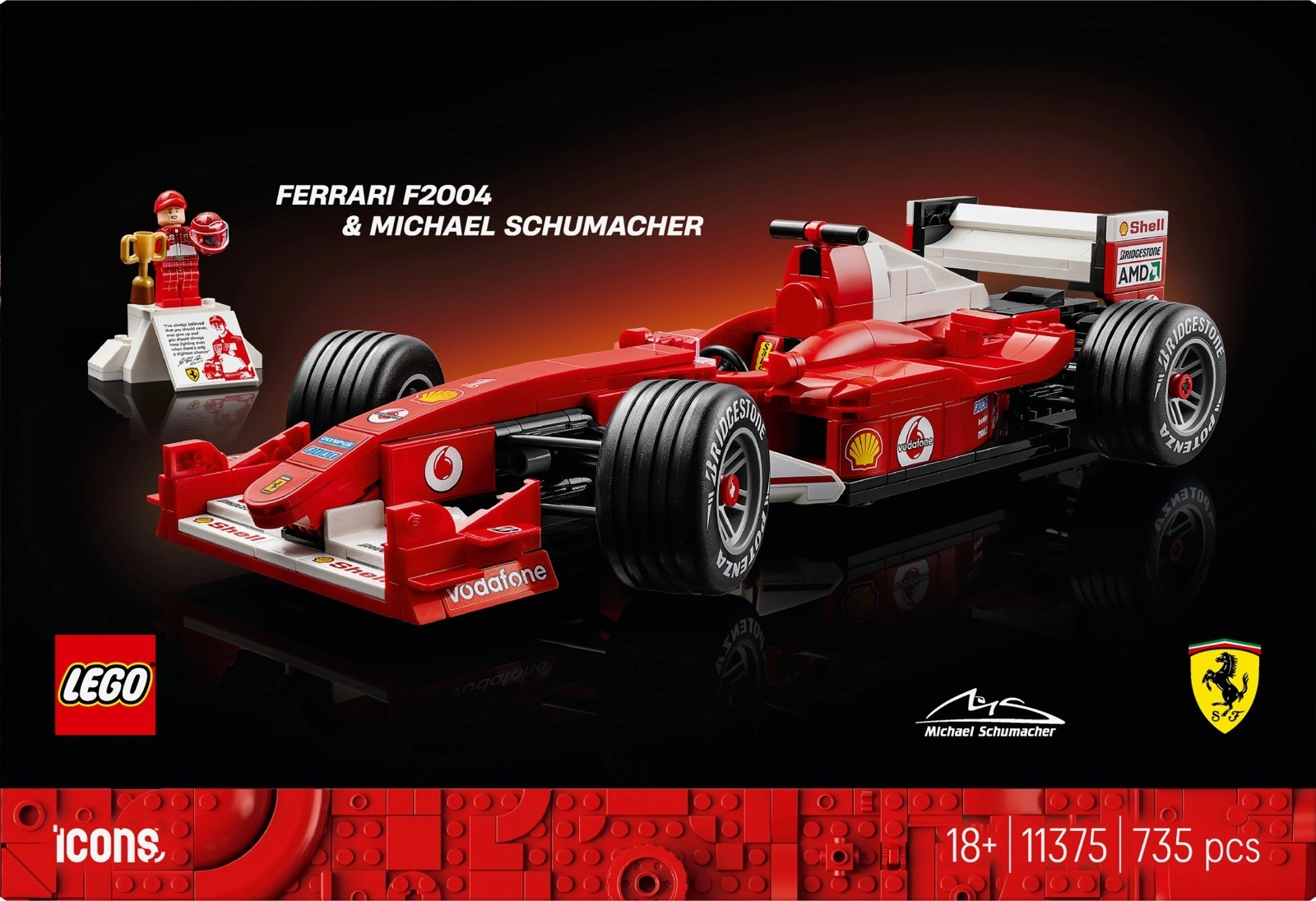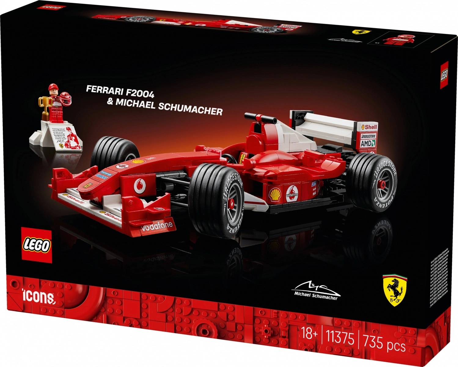 Bauen Sie eine Ikone der Geschwindigkeit: den Ferrari F2004, mit dem Michael Schumacher die Saison 2004 dominierte. Das Set umfasst 735 Teile und bietet sowohl ein intensives Bauerlebnis als auch ein repräsentatives Ausstellungsstück. Das Modell verfügt über funktionsfähige Lenkung, ein detailreiches Cockpit und einen originalgetreu nachgebildeten V10-Motor – alles auf einem stilvollen Sockel mit aufgedruckten Fahrzeugstatistiken.