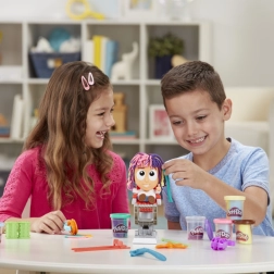 Mit diesem Play-Doh-Friseurset entstehen im Handumdrehen verrückte Frisuren. Setzen Sie die Figur in den Stuhl, drücken Sie, und aus dem Kopf „wächst“ eine bunte Mähne, die Sie weiter schneiden, kämmen und verzieren können. Mehrfarbige Knetmasse und lustiges Zubehör machen aus jedem Haarschnitt eine neue, fantasievolle Geschichte.