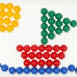 Das Einsetzen der Hütchen ins Raster unterstützt die Fingerfertigkeit, die Hand-Auge-Koordination und natürliches Lernen durch Spiel.