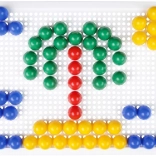 Das Set enthält eine Kunststoffrasterplatte 21 × 16 cm und 80 Hütchen mit 15 mm Durchmesser. Dank der kompakten Maße ist es ideal für zu Hause und auf Reisen. Vorlagen sind nicht enthalten – so wird die freie Gestaltung und Fantasie gefördert.