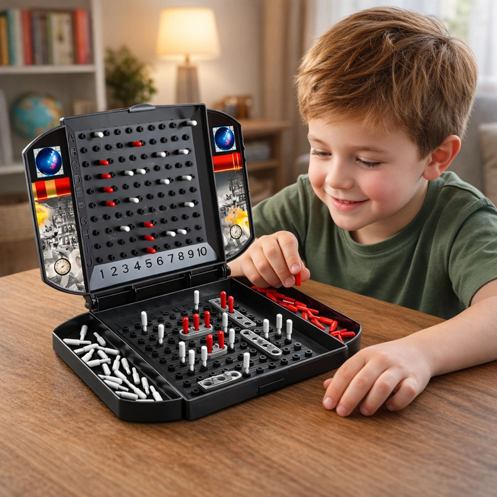 Stellen Sie Ihre Flotte auf, orten Sie die Schiffe des Gegners mit taktischen Koordinaten und versenken Sie sie eines nach dem anderen. Jeder Treffer und jede Minute Spannung stärkt strategisches Denken und das Vorhersehen gegnerischer Züge. Dank der verschließbaren Konstruktion werden alle Komponenten direkt im Brett verstaut – ideal für Familienabende und schnelle Duelle mit Freunden.