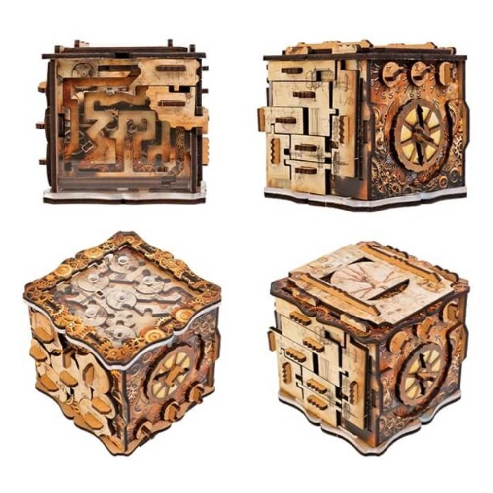 iQube Light ist eine originelle Puzzle-Box, die clevere Mechanismen, Schiebeelemente und Geheimverschlüsse zu einem fesselnden Erlebnis vereint. Zum Öffnen benötigen Sie weder Batterien noch rohe Kraft – nur Geduld, Logik und geschickte Finger. Dank des eleganten Steampunk/technischen Looks ist sie zugleich eine stilvolle Dekoration für Ihr Zuhause.