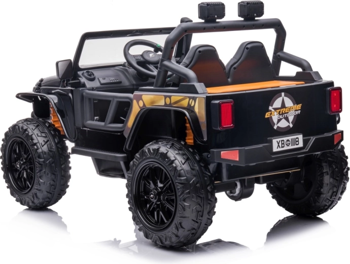 Der Jeep Monster ist ein leistungsstarkes elektrisches Kinderauto mit 4×200 W Antrieb, das sowohl glatte als auch leicht unebene Strecken meistert. Hohe Bodenfreiheit von 21 cm, hintere Federung und große EVA-Räder 30×12 cm sorgen für hervorragenden Komfort und Traktion. Dank sanftem Anfahren und der Wahl der Fahrtrichtung vorwärts/rückwärts lernen Kinder sicher zu fahren.