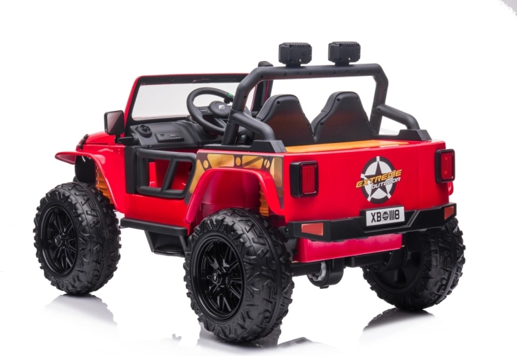 Der Jeep Monster 24V ist ein elektrisches Kinder-Geländefahrzeug, das Abenteuer im Garten wie auch auf festen Flächen meistert. Vier kräftige Motoren 4×200 W in Kombination mit einem 24 V 7 Ah-Akku bieten starken Zug und eine ruhige Fahrt. Große EVA-Schaumräder 30×12 cm dämpfen Bodenunebenheiten, die hintere Federung steigert den Komfort. Eltern schätzen die 2,4-GHz-Fernbedienung mit drei Geschwindigkeiten und Not-Stop-Taste.