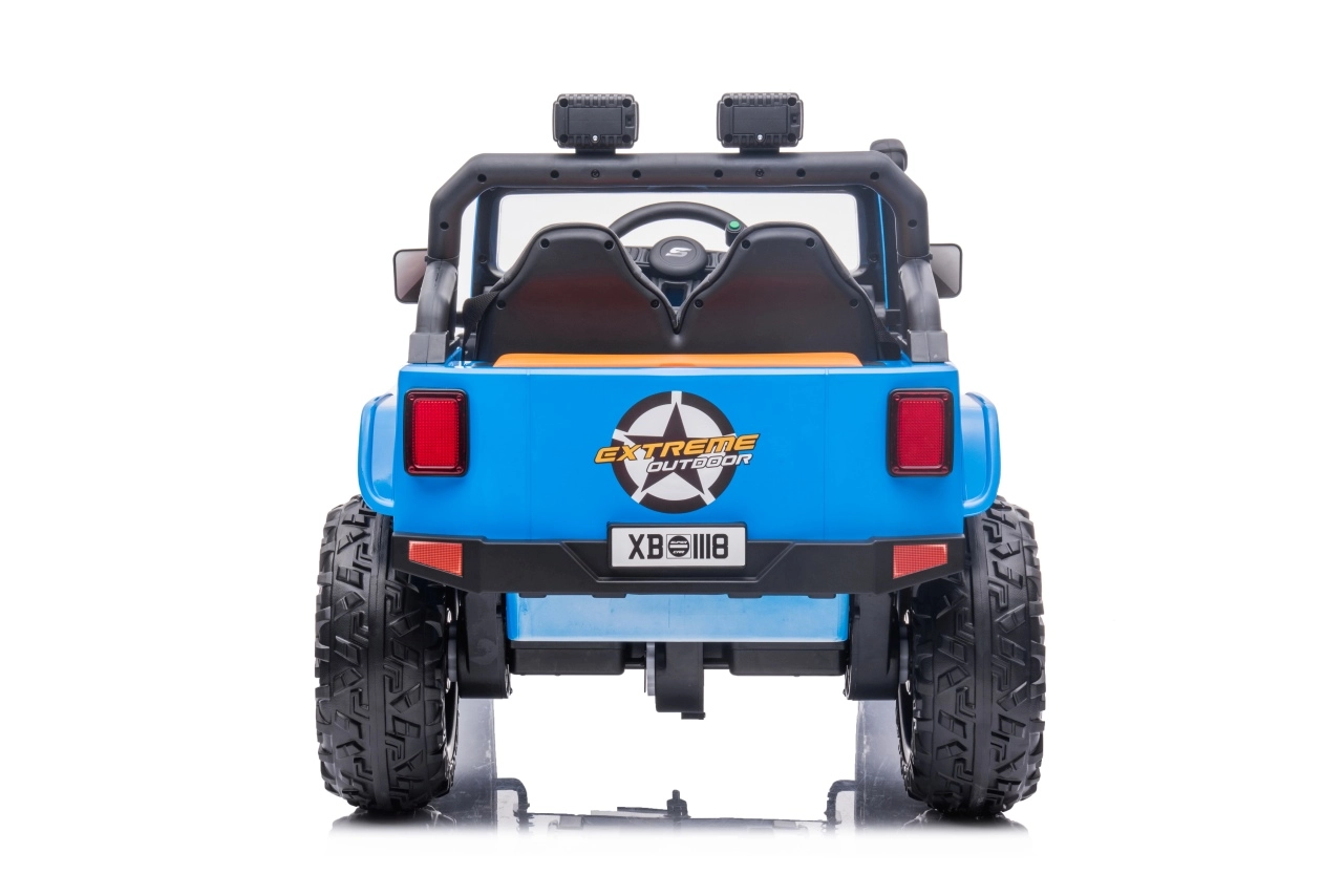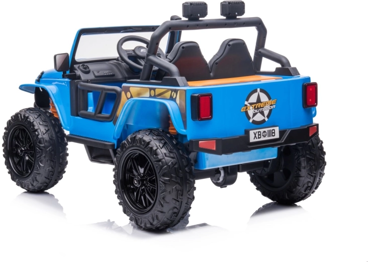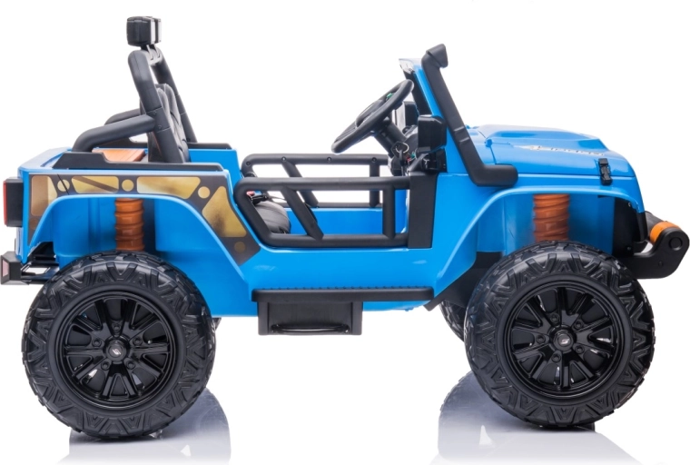 Das robuste Kinderauto im Offroad‑Stil Jeep Monster 24V ist für Outdoor‑Spaß gemacht. Dank Allradantrieb 4×200 W und großen EVA‑Reifen meistert es Unebenheiten und Rasen. Die zweisitzige Ausführung mit Gurten und Kunstleder-Polsterung bietet Komfort für längere Ausfahrten, während der sanfte Anfahrmodus (Slow Start) Kindern Sicherheit am Lenkrad gibt.