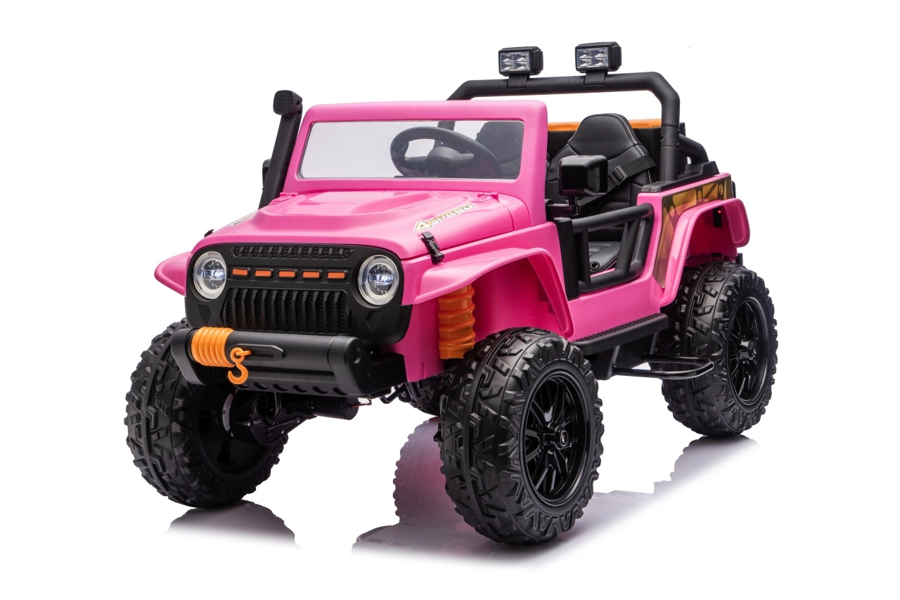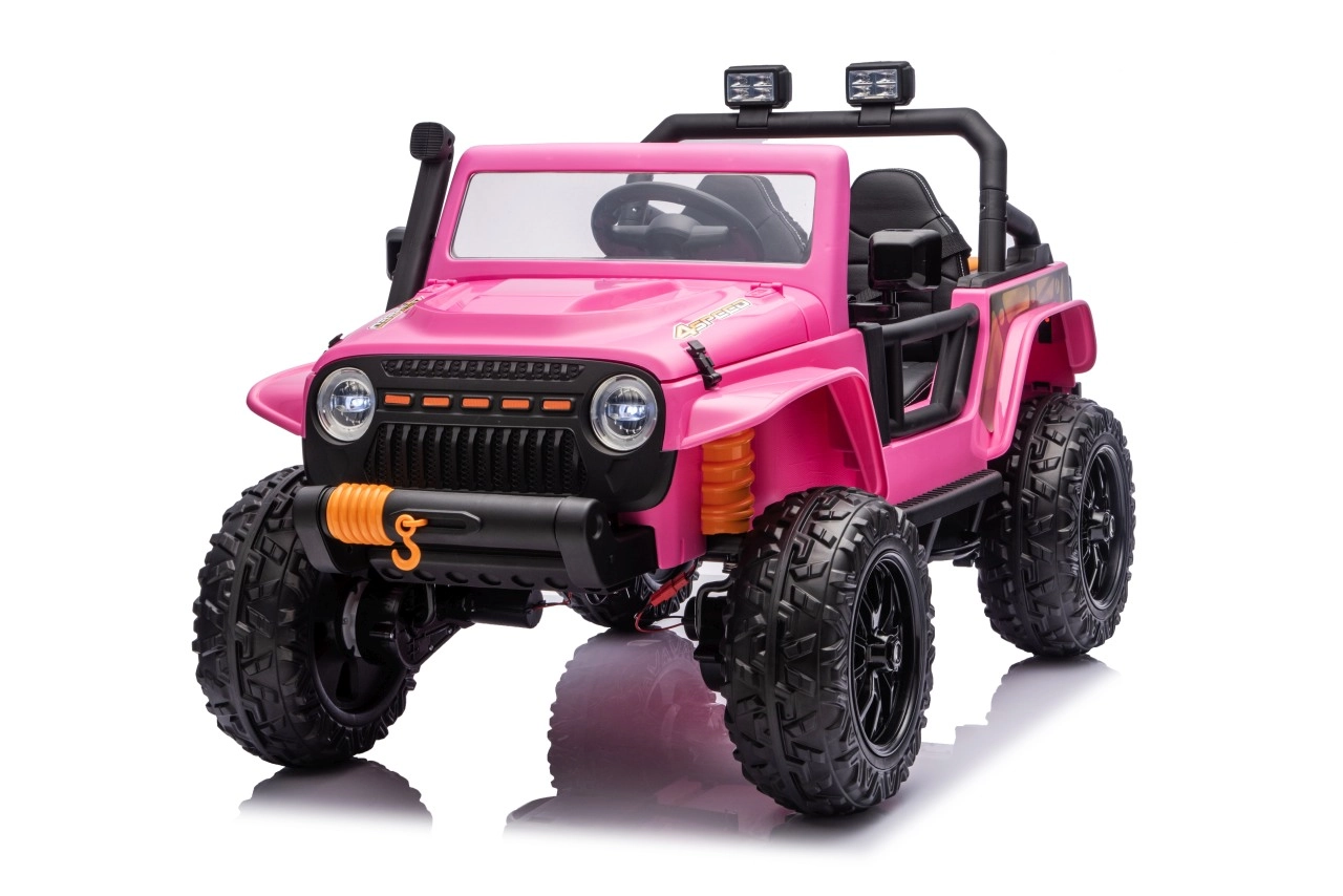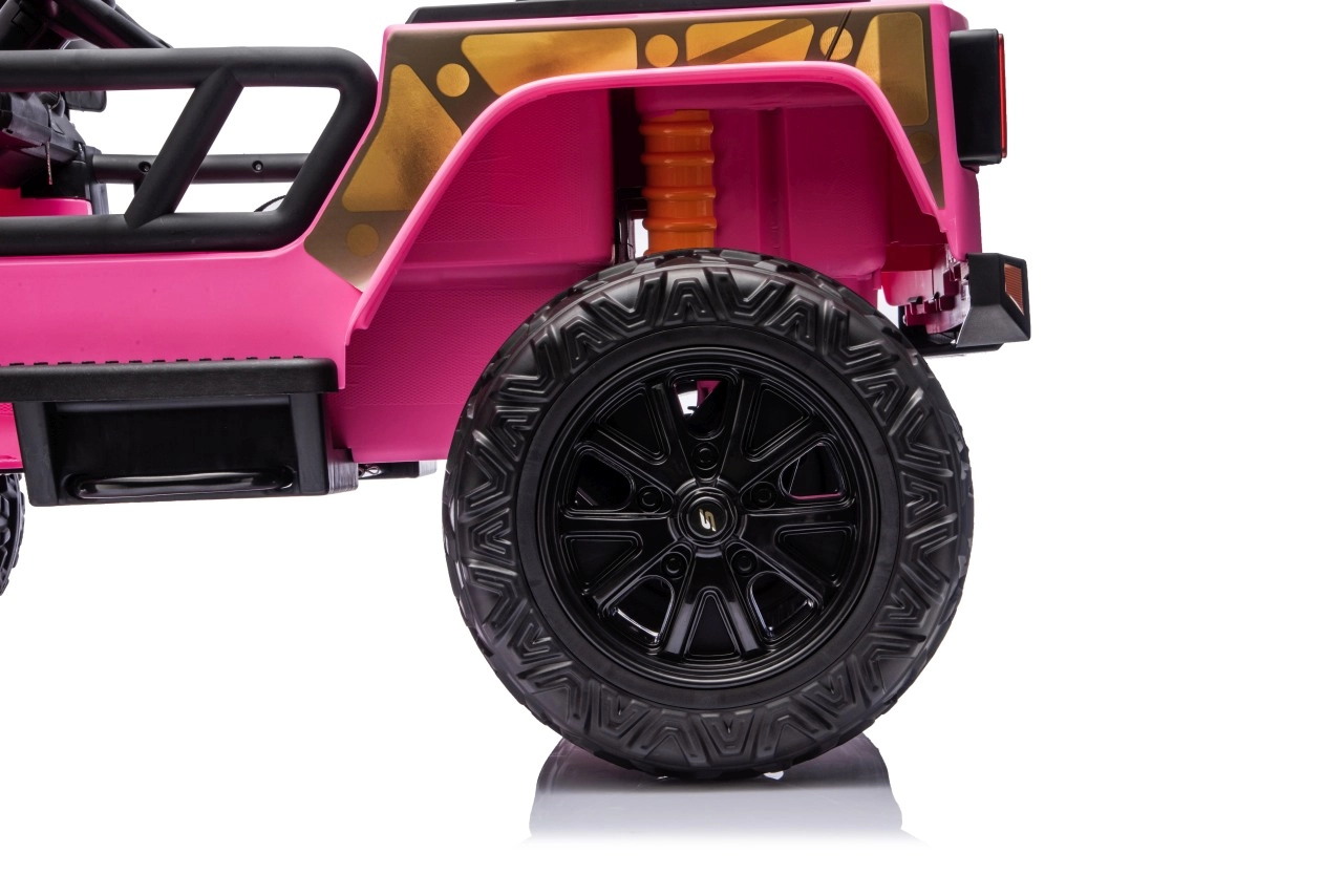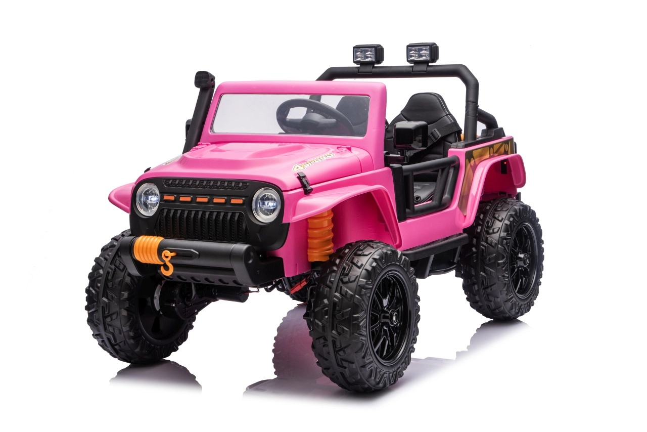 Der Jeep Monster ist die ideale Wahl für kleine Abenteurer. Die hohe Bodenfreiheit von 21 cm, die Hinterradfederung und die großen Offroad-EVA-Räder sorgen für eine komfortable Fahrt auch auf unebenem Terrain. Vier 200-W-Motoren gewährleisten sanftes Anfahren und ausreichend Kraft am Berg, während der Sanftanlauf Kinder vor Ruckeln schützt.