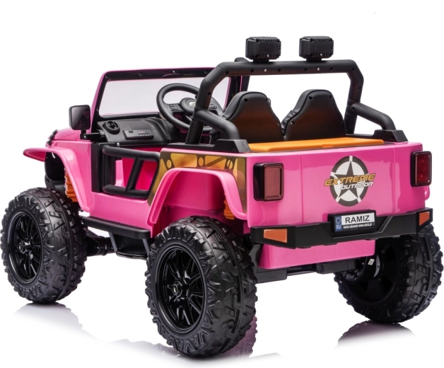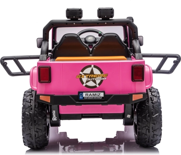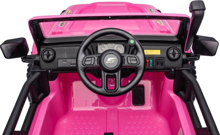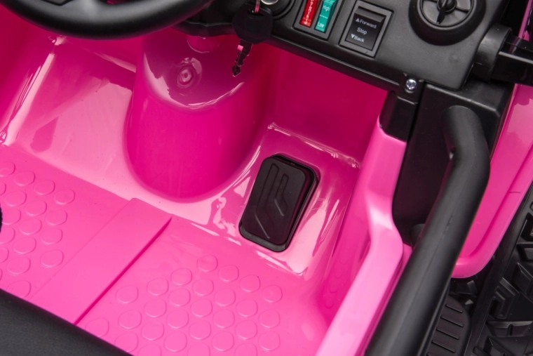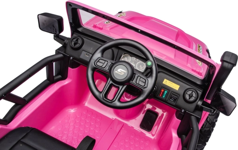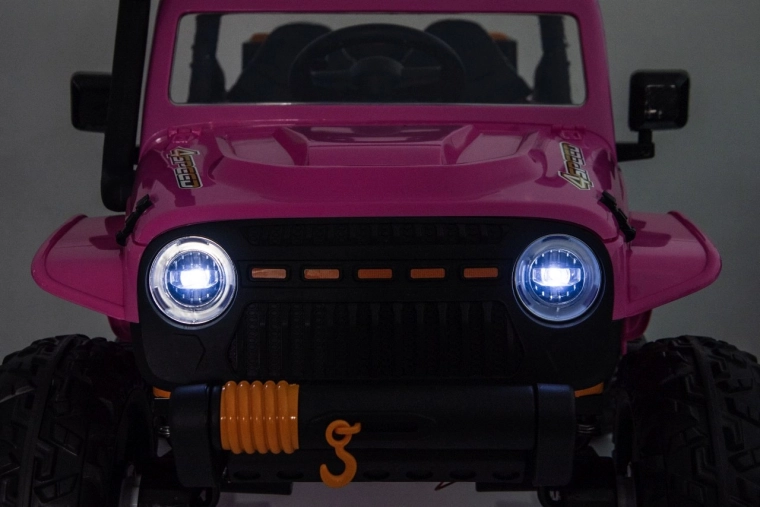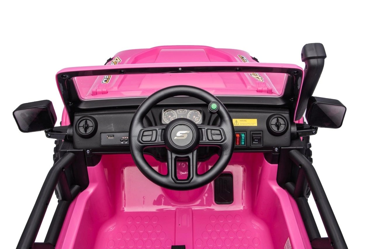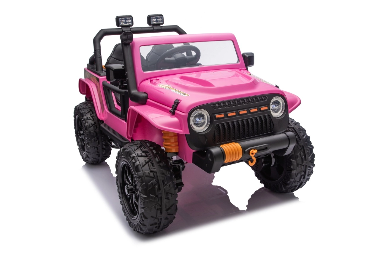 Der Jeep Monster ist die ideale Wahl für kleine Abenteurer. Die hohe Bodenfreiheit von 21 cm, die Hinterradfederung und die großen Offroad-EVA-Räder sorgen für eine komfortable Fahrt auch auf unebenem Terrain. Vier 200-W-Motoren gewährleisten sanftes Anfahren und ausreichend Kraft am Berg, während der Sanftanlauf Kinder vor Ruckeln schützt.