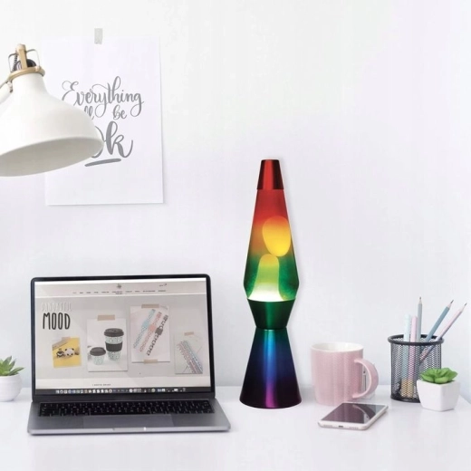 Entdecken Sie den Zauber der klassischen Lavalampe in einem modernen Regenbogen-Look. Fließendes Wachs im warmen Licht erzeugt eine beruhigende Bewegung – ideal zur Entspannung nach einem anstrengenden Tag und als originelles Accessoire für Wohnzimmer, Schlafzimmer oder Arbeitszimmer. Mit einer Höhe von 40 cm wirkt sie als attraktive Dekoration, ohne zu viel Platz einzunehmen.