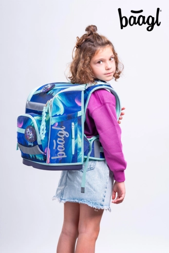 Zum Set gehören zudem ein geräumiges einlagiges Federmäppchen mit Klappen, festen Gummilaschen und Stundenplanfenster, ein praktischer Beutel mit Reißverschlusstasche für Hausschuhe oder Sport sowie eine Halsgeldbörse mit Namensfeld und Sicherheitsverschluss. Alles ist im attraktiven Aurora-Design mit reflektierenden Elementen für bessere Sichtbarkeit aufeinander abgestimmt.