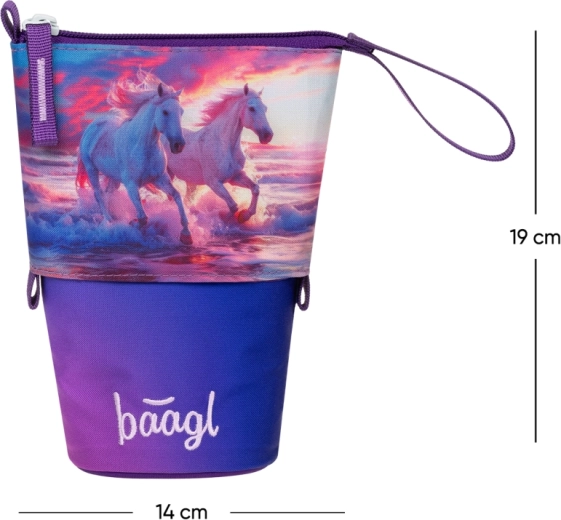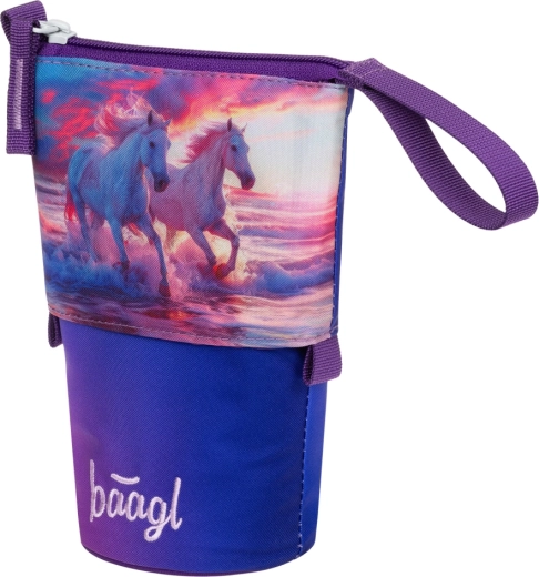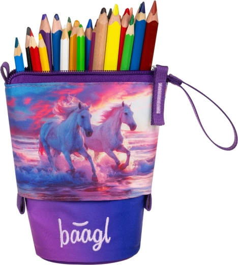 Entdecken Sie das praktische Schulmäppchen Pastelkovník Baagl Pferde Herz, das modernes Design, Funktionalität und Rücksicht auf die Umwelt vereint. Die robuste und wasserabweisende Konstruktion behält die Form, sodass Ihre Buntstifte und Marker stets sicher und übersichtlich aufbewahrt sind.