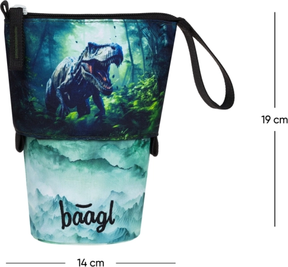 Das praktische Schulmäppchen Pastelkovník Baagl im Dino-Design verbindet moderne Funktionalität mit Nachhaltigkeit. Es besteht aus einem stabilen, wasserabweisenden Material, das formstabil ist und Buntstifte, Filzstifte und weiteres Zubehör zuverlässig schützt. Dank der einzigartigen Form und der durchdachten Innenaufteilung behalten Sie stets den Überblick.