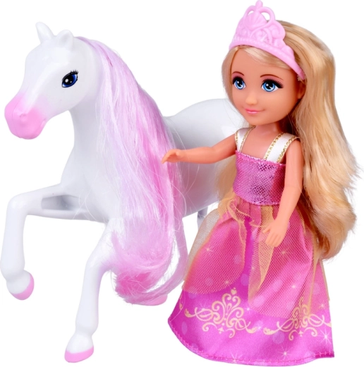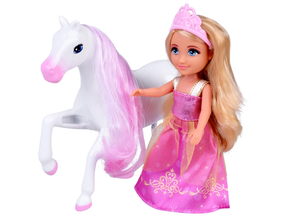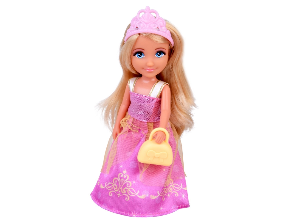 Puppe mit langem blondem Haar, rosa Krone und glitzerndem Kleid. Ideal für Rollenspiele – von königlichen Besuchen bis zu Bällen im Palast.