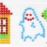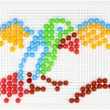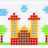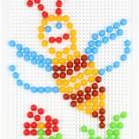 Im Set sind 200 robuste, glatte Hütchen (10 mm), die fest in der gelochten Platte sitzen und dadurch angenehm zu stecken und neu zu arrangieren sind. Das Mosaik enthält keine Vorlagen, was freie Kreativität und originelle Ideen anregt.