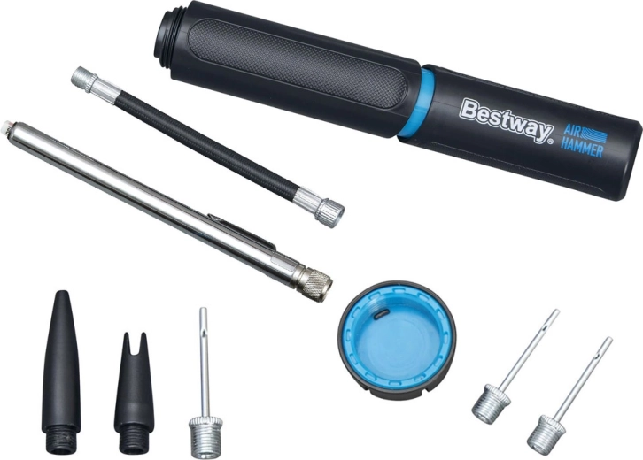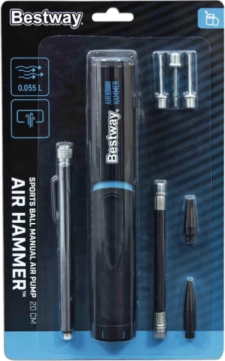 Die Handpumpe BESTWAY Air Hammer verbindet universelle Einsatzmöglichkeiten mit einfacher Bedienung. Sie ist ideal für den Haushalt, das Training und den Urlaub. Mit ihrer kompakten Länge von 20 cm passt sie in Rucksack und Sporttasche, und dank des praktischen Aufbewahrungsplatzes für Nadel und Adapter haben Sie alles stets griffbereit.