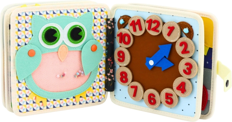 Dieses textile Quiet Book ist für kleine Entdecker konzipiert, die gern berühren, ausprobieren und Neues entdecken. Weicher, sicherer Filz fühlt sich angenehm an, und farbige Seiten mit Relief-Applikationen laden zur Interaktion ein. Dank beweglicher Teile, Reißverschlüssen, Perlen und verschiebbaren Elementen trainieren Kinder ihre Fingerfertigkeit und Konzentration.