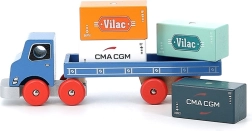 Der Holzlastwagen Vilacity von VILAC ist die perfekte Grundlage für die kindliche Verkehrs- und Logistikwelt. Enthalten sind vier Containerblöcke mit magnetischer Befestigung, die Kinder einfach be- und entladen sowie zwischen Zugmaschine und weiteren Elementen der Vilacity-Welt umsetzen können. Robustes Holz, glatte Kanten und kräftige Farben fördern sicheres und fesselndes Spiel.
