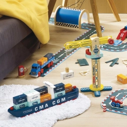 Das Modell entstand in Zusammenarbeit mit dem führenden Transportunternehmen CMA CGM und bietet dadurch einen realistischen Touch. Es ist voll kompatibel mit der gesamten Vilacity-Kollektion – ergänzen Sie einen Hafenkran, ein Schiff oder weitere Sets und erweitern Sie Geschichten rund um Verladung, Transport und Logistik.