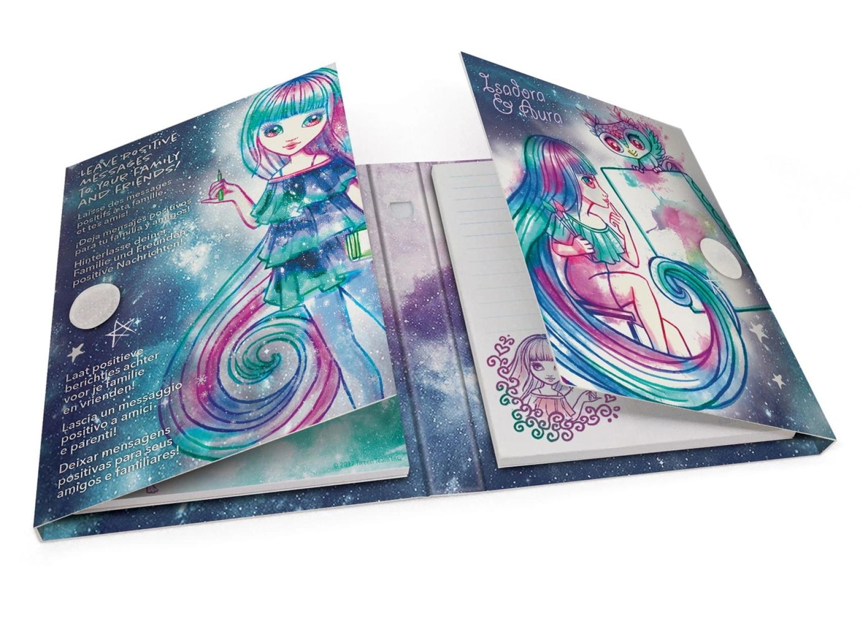 Robuste Einbände mit farbigen Illustrationen und Sternenmotiven begeistern Fans magischer Galaxien und lassen jeden Eintrag erstrahlen.