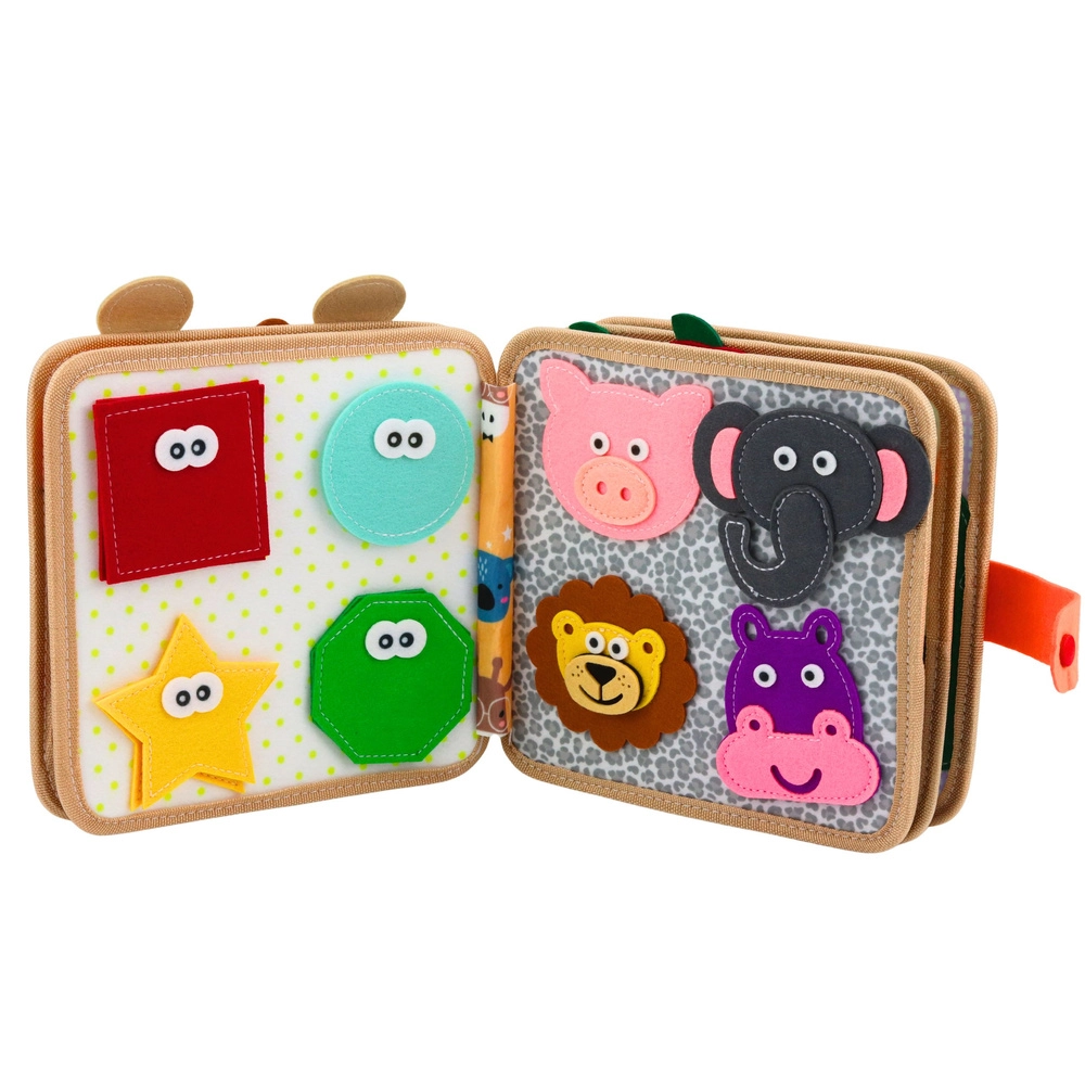Das leichte und kompakte Buch mit Verschluss beschäftigt Kinder im Kinderzimmer, im Kindergarten und auf Reisen – leises und kreatives Spiel überall.